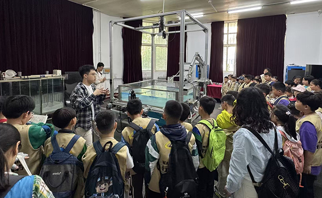 2025年5月18日,来自烟台市多所中学的160余位师生访问实验室,开展海洋科普研学活动。研学团先后参观了实验室大型风-浪-流实验水槽与地转实验平台,通过实验室博士宣讲团现场讲解与实验观摩,学习了解海洋中与海浪、海流相关的物理现象。